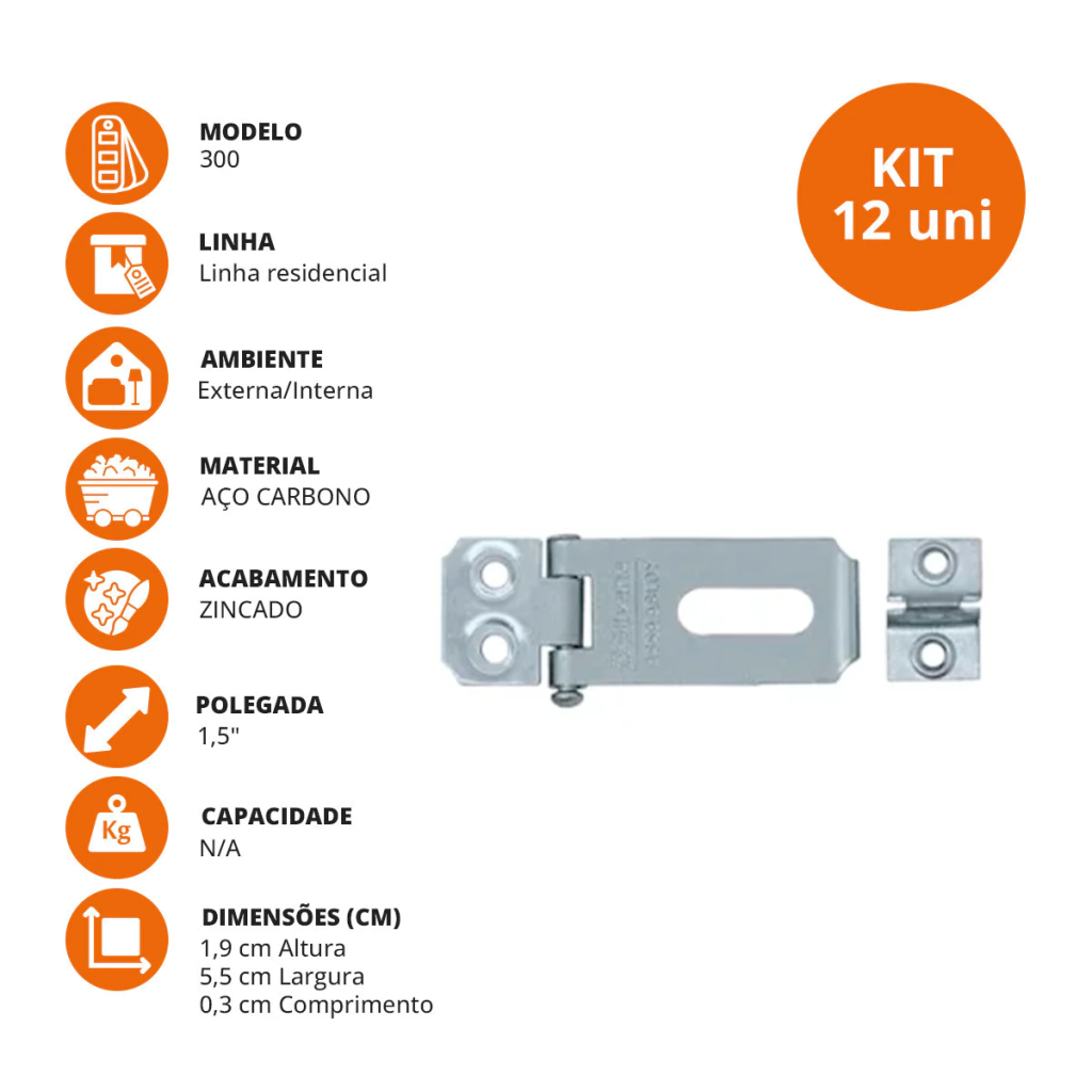 O Kit 12 Dobradiças Silvana 300 apresenta a combinação perfeita entre qualidade e resistência, ideal para diversas aplicações em móveis, portas, portões, armários, baús, entre outros. Com 1,5 polegadas, estas dobradiças em aço carbono zincado garantem durabilidade e um acabamento cromado elegante em qualquer ambiente.
